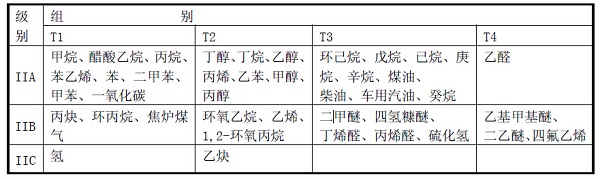 爆炸性混合物T1~T4溫度組別對應(yīng)表