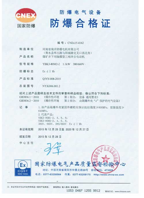 a.有防爆標(biāo)志和防爆合格證編號,并與YBK3防爆電機的使用場所要求一致;